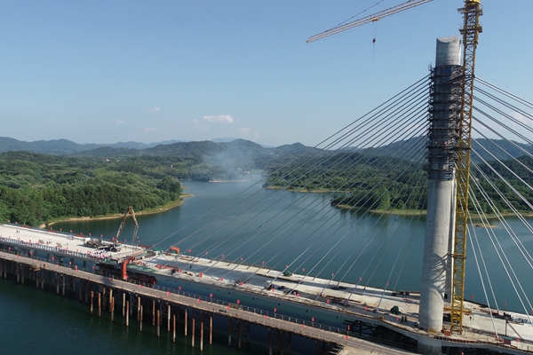 環(huán)萬佛湖旅游扶貧公路工程是舒城縣近年來投資最大、社會(huì)關(guān)注度最高的重點(diǎn)工程之一。老柴崗大橋作為環(huán)萬佛湖旅游扶貧公路工程控制性工程,是一座集景觀、交通于一體的橋梁;大橋主塔高81米,整個(gè)橋塔輪廓呈“佛手合十”狀。老柴崗大橋的合龍意味著環(huán)萬佛湖項(xiàng)目主體工程的順利完工。