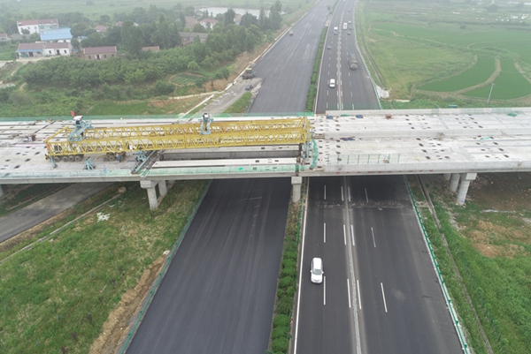 上跨G3京臺高速分離立交橋為涉高速施工,所跨路段日均車流量達五萬多輛,并與正在進行的高速改擴建瀝青攤鋪交叉施工,需要在規(guī)定的半幅封閉時間內(nèi)完成上跨梁板架設(shè)任務(wù),施工環(huán)境復(fù)雜,組織難度較大。經(jīng)過多次專家論證,項目不斷優(yōu)化施工方案,并堅持責任到人,狠抓時間節(jié)點,有效克服了各項困難,梁板架設(shè)有序推進,順利實現(xiàn)了上跨高速橋的順利合龍。