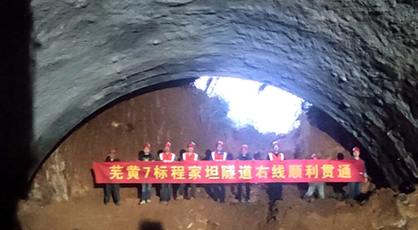 蕪黃高速07標(biāo)首條隧道右線順利貫通