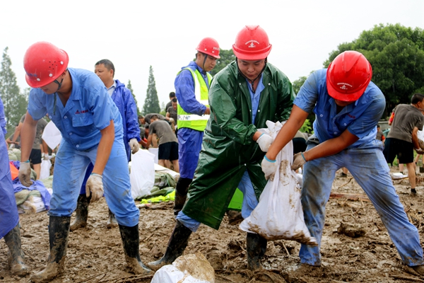 7月23日,路面公司組建的防汛抗洪搶險(xiǎn)救援隊(duì)在完成同大圩保衛(wèi)戰(zhàn)后,又快速集結(jié)隊(duì)伍,冒雨逆行,轉(zhuǎn)戰(zhàn)增援紫荊村小南河抗洪搶險(xiǎn),和正在參與抗洪搶險(xiǎn)的解放軍官兵共同投入戰(zhàn)斗。連續(xù)6小時(shí)的冒雨奮戰(zhàn),共填裝轉(zhuǎn)運(yùn)沙袋5000多只,成功完成強(qiáng)固堤壩任務(wù),比預(yù)定時(shí)間提前了近兩小時(shí)。