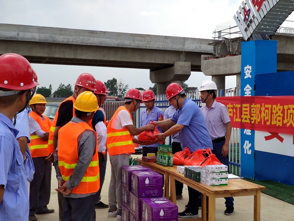 項目積極組織開展“消除事故隱患,筑牢安全防線”主題安全月活動,組織員工和一線作業(yè)人員觀看安全微電影,學習安全防護常識,提高安全防護意識。結合項目實際開展交通傷害應急演練,帶領一線作業(yè)人員學習交通傷害后的應急操作,提高一線作業(yè)人員應急知識儲備,提高應急處置能力。高溫天氣來襲,項目每天向一線作業(yè)人員發(fā)放十滴水、藿香正氣液等防暑降溫藥品和綠豆、白糖、礦泉水等防暑降溫物資,保障安全生產(chǎn),為大干快上保駕護航。