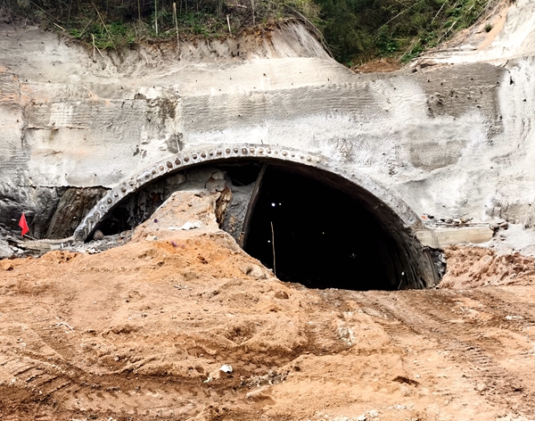 面對(duì)隧道圍巖差、跨徑大、洞口沉積淤泥難題,項(xiàng)目提前謀劃,強(qiáng)化過程控制,加強(qiáng)超前地質(zhì)預(yù)報(bào)及監(jiān)控量測(cè)頻率,及時(shí)改進(jìn)和優(yōu)化施工方案。對(duì)洞口沉積淤泥段采取科學(xué)有效措施,確保汛期來臨前完成了進(jìn)洞任務(wù),歷時(shí)210多天,順利實(shí)現(xiàn)了雙向貫通。