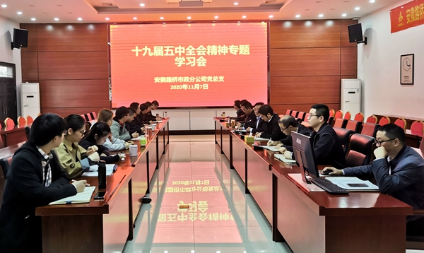 11月7日上午,市政分公司黨總支召開專題學習會議,學習貫徹黨的十九屆五中全會精神,分公司領導班子成員、后勤支部黨員、各職能部門工作人員參加學習,分公司黨總支書記劉振嶺主持會議。