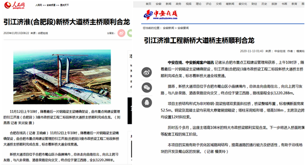 11月12日上午10時(shí),隨著最后一片鋼箱梁主梁精確架設(shè),公司承建的引江濟(jì)淮(合肥段)3座市政橋梁工程二標(biāo)段新橋大道橋主橋順利完成合龍,全線實(shí)現(xiàn)貫通,人民網(wǎng)、中安在線、安徽電視臺(tái)、合肥電視臺(tái)等多家主流媒體聚焦報(bào)道。
