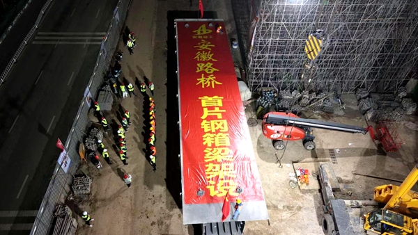 3月25日23時,安徽路橋合肥市南二環(huán)金寨路、合作化路節(jié)點(diǎn)工程施工現(xiàn)場燈火通明,項(xiàng)目正式啟動主線橋鋼箱梁架設(shè)作業(yè),標(biāo)志著該項(xiàng)目在全線率先進(jìn)入主線橋上部結(jié)構(gòu)施工,較計劃工期節(jié)點(diǎn)提前了20天。