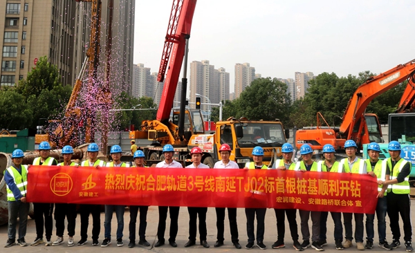 開局就是決戰(zhàn)、起步就是沖刺。2020年9月29日,項(xiàng)目僅用不到半個月的時間完成各項(xiàng)準(zhǔn)備工作,在合肥軌道2、3號線延長線全線率先開鉆首樁樁基,比預(yù)定時間提前一個月。項(xiàng)目部錨定節(jié)點(diǎn)工期,自我加壓,加強(qiáng)管理、科學(xué)調(diào)度,積極細(xì)化施工組織,制定每日施工任務(wù)清單,增加機(jī)械設(shè)備投入,全面掀起勞動競賽大干熱潮。針對地質(zhì)特點(diǎn),引進(jìn)400大功率旋挖鉆機(jī)并改良鉆頭為螺旋鉆頭,提高了設(shè)備使用率和人員勞動生產(chǎn)率。暢通施工各方溝通渠道,積極征集合理化建議,凝聚各方智慧努力加快施工進(jìn)度。