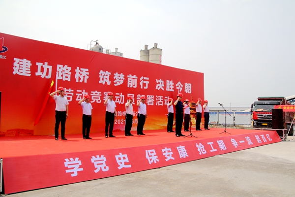 路面公司總經(jīng)理薛斌作動員講話,副總經(jīng)理陳智宣讀了勞動競賽活動方案,項(xiàng)目經(jīng)理代表、黨員代表、青年代表和施工班組代表分別作了表態(tài)發(fā)言。現(xiàn)場還進(jìn)行了“黨員先鋒隊(duì)”、“工人先鋒號”、“青年突擊隊(duì)”授旗。