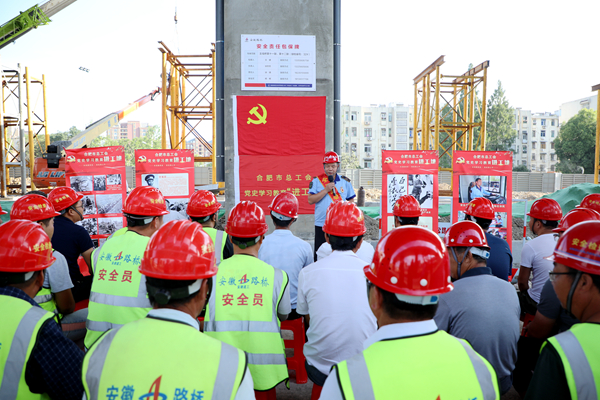 7月21日下午,合肥市總工會(huì)到暢通二環(huán)(西南環(huán))項(xiàng)目舉辦黨史學(xué)習(xí)教育“進(jìn)工地”活動(dòng),全國(guó)五一勞動(dòng)獎(jiǎng)?wù)芦@得者夏力為30多名工友作主題宣講。