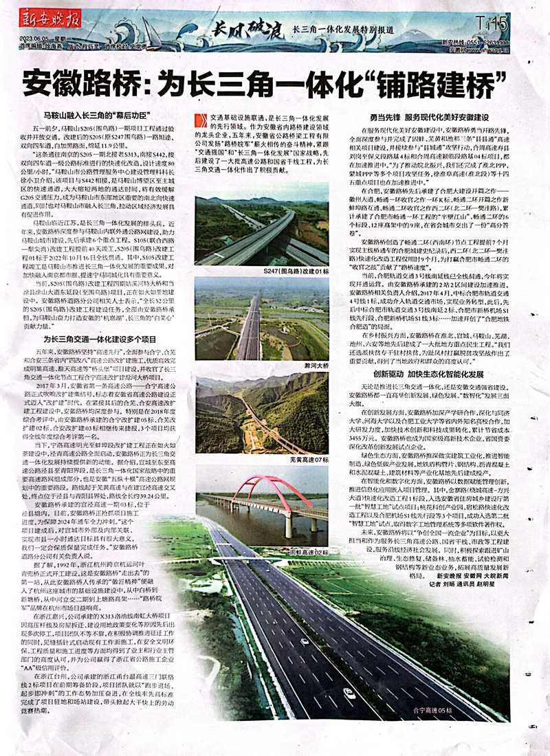 【名媒聚焦】新安晚報(bào):安徽路橋——為長三角一體化“鋪路建橋”