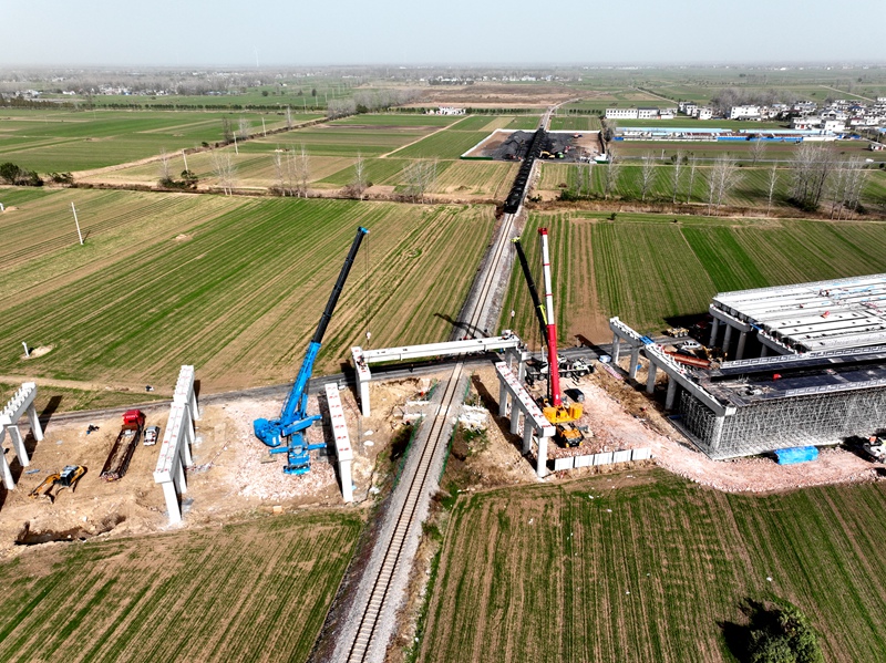 11月17日,徐淮阜高速亳州段路基02標(biāo)項目順利完成全線護欄首件施工和跨淮北礦業(yè)鐵路橋“跨鐵”位置11片箱梁架設(shè),標(biāo)志著該項目重難點工程取得了階段性成效。