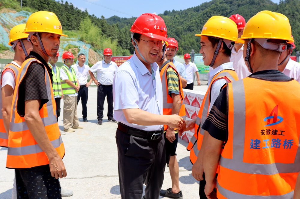 8月6日上午,建工股份黨委副書記、副董事長(zhǎng)、總經(jīng)理李有貴一行,赴涇青高速項(xiàng)目調(diào)研并開(kāi)展“送清涼”慰問(wèn)。