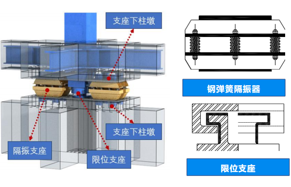 鋼彈簧隔振器結合限位支座隔振技術在合肥新橋國際機場綜合交通中心項目驚艷亮相。為應對高鐵、地鐵振動影響,于地下室特定位置設置隔振層,采用國內(nèi)先進的3Hz鋼彈簧隔振器結合限位支座,隔振效果卓越,性能穩(wěn)定可靠,為旅客營造靜謐舒適環(huán)境。