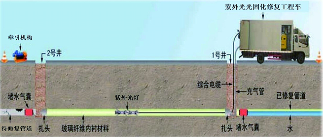 紫外光固化管道修復技術為城市雨污水管網(wǎng)改造帶來全新方案探索。將特制軟管材料浸漬光固化樹脂后拉入舊管道,在紫外光照射下迅速固化形成高強度內(nèi)襯管,無需開挖路面,極大減少施工擾民與環(huán)境破壞。在新站區(qū)排水管網(wǎng)排查整治完善工程一期-1標順利實現(xiàn)了安徽省內(nèi)最大管徑管道紫外光固化修復。