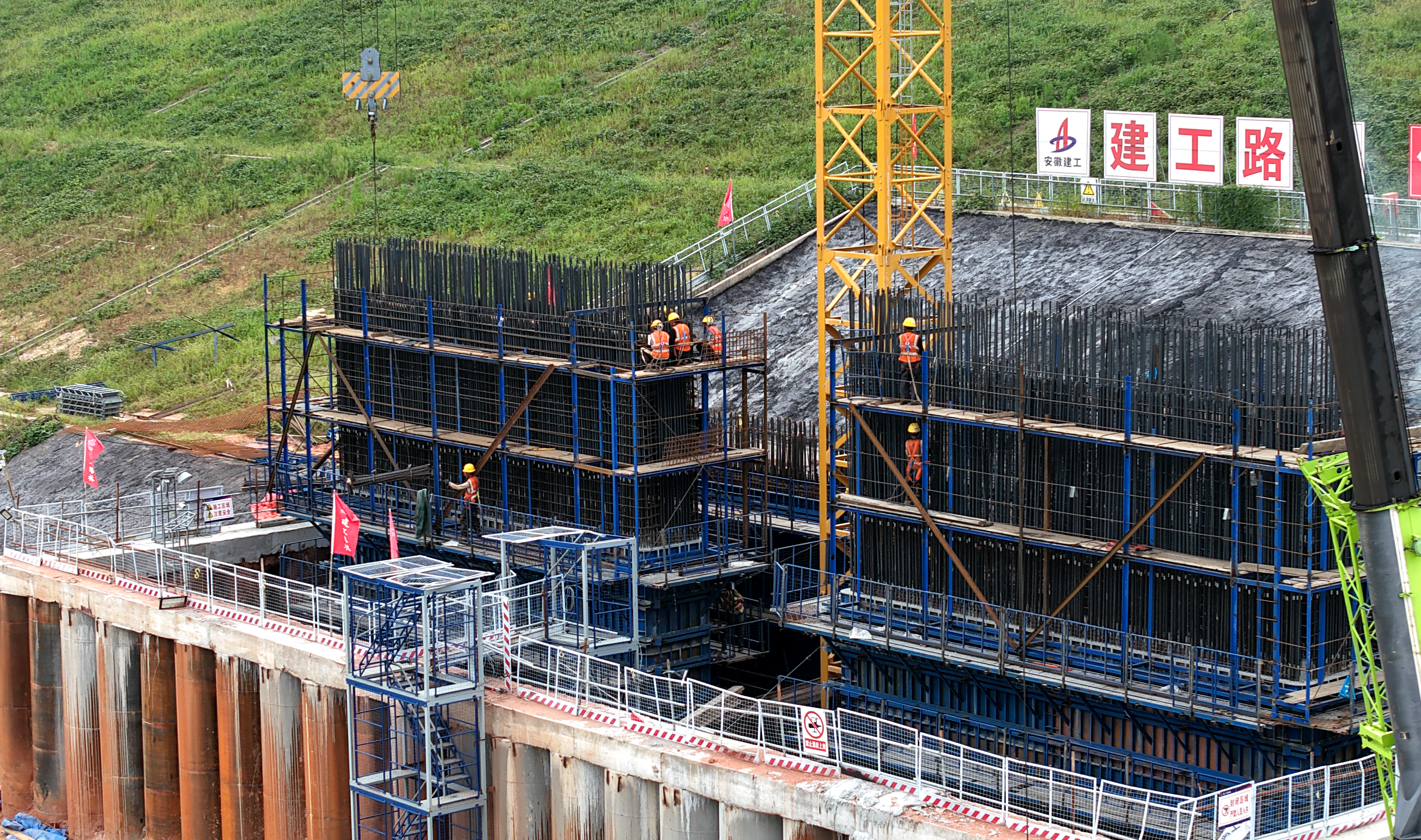 引江濟淮特大橋共設(shè)4座主墩承臺,全程采用C30混凝土一次性連續(xù)澆筑完成,累計澆筑混凝土約3843方。針對深基坑施工空間受限的核心難題,項目部制定專項施工方案,多次組織技術(shù)人員進行現(xiàn)場勘察與施工模擬推演,持續(xù)優(yōu)化施工流程與人員分工,并合理規(guī)劃施工通道,最大限度提升施工效率,確保各工序無縫銜接。