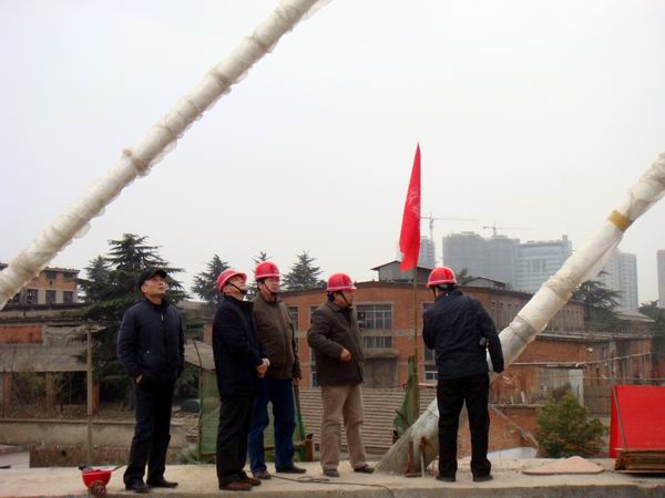 戴總一行參觀了大橋南岸主橋施工現(xiàn)場。在聽取了項目部江仲明經(jīng)理對前期工作和當(dāng)前施工進展情況的匯報后,戴總對我部工作給予了高度評價,同時提出了更高的要求,希望我部繼續(xù)努力,再上新臺階。隨后,戴總一行還登上了主橋橋面,實地察看了正在緊張進行的主橋前支點掛藍施工,親切慰問了冒著嚴(yán)寒戰(zhàn)斗在一線的現(xiàn)場施工工人和技術(shù)人員,并就主橋完成后如何拆除前支點掛藍提出了指導(dǎo)性的方案。