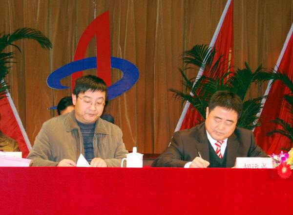 集團公司董事長、總經(jīng)理胡運成與公司總經(jīng)理汪衛(wèi)東簽訂2010年生產(chǎn)、經(jīng)營目標責任書