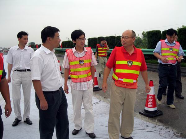 省交投集團(tuán)領(lǐng)導(dǎo)一行來到我部施工前場,在認(rèn)真聽取了我部關(guān)于工期、進(jìn)度及質(zhì)量的詳細(xì)匯報(bào)后,視察了原路面銑刨、局部水穩(wěn)破除或銑刨、混凝土澆筑、瀝青攤鋪等工作的施工進(jìn)展情況。省交投集團(tuán)領(lǐng)導(dǎo)指出,連續(xù)陰雨天氣給施工帶來了一定影響,我們在保障施工進(jìn)度的同時(shí)也要保證施工質(zhì)量。看到前場施工安全標(biāo)牌、錐標(biāo)擺放規(guī)范、有序,施工人員安全裝備齊全,視察組表示了滿意。視察小組說:“安全”和“質(zhì)量”始終是我們施工工作的排頭兵,它們之間互相依存、相輔相成,共同關(guān)系著我們施工工作的命脈,我們要始終緊抓不放。我項(xiàng)目經(jīng)理薛斌表示,在業(yè)主領(lǐng)導(dǎo)的大力關(guān)懷和正確指導(dǎo)下,我們一定會再接再厲,克服各種不利因素,“保安全”、“抓質(zhì)量”、“搶工期”,順利完成施工任務(wù)。
