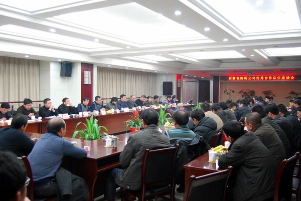 座談會開始前,會場播放了公司宣傳片,展示公司二十五年來的發(fā)展歷程。座談會由副總經(jīng)理盛明宏主持。總經(jīng)理助理傅月斌通報了公司2010年施工總體情況。公司分管領(lǐng)導、各部門負責人、項目經(jīng)理分別作了發(fā)言。黨委書記陳光磊指出合作共贏、共同發(fā)展是公司永久追求的目標,安徽路橋的業(yè)績也凝聚著合作隊伍的努力;合作共贏不僅是要經(jīng)濟利益,更要追求社會效益;公司各級對合作隊伍的真誠服務(wù)是職責所在,合作隊伍認真履約、堅強給力,就是對公司工作的最大支持。陳書記還表示目前項目已建立了支部、職工小家、職工書屋等,歡迎合作隊伍積極參加,享受權(quán)利。
