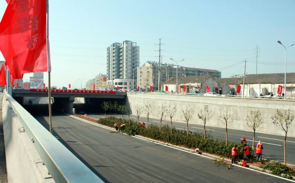 新蚌埠路與北二環(huán)路立交橋采取北二環(huán)路下穿新蚌埠路的路塹式結(jié)構(gòu),通過立交銜接,兩條路實(shí)現(xiàn)交通分流,成為北部城區(qū)的兩條快速通道。該項(xiàng)目自2008年9月開工以來,積極響應(yīng)公司號召,發(fā)揚(yáng)“團(tuán)結(jié)拼搏、優(yōu)質(zhì)高效”的精神,趕進(jìn)度、保質(zhì)量、重安全,全體員工們團(tuán)結(jié)一致,艱苦奮斗,于2009年3月順利完成施工任務(wù),比原計(jì)劃工期提前了兩個(gè)多月,深受業(yè)主和社會各界的好評。該項(xiàng)目在施工過程中獲市重點(diǎn)局通報(bào)嘉獎,榮獲了建工集團(tuán)優(yōu)秀項(xiàng)目部、安全文明示范工地等稱號,項(xiàng)目經(jīng)理李建成被評為建工集團(tuán)優(yōu)秀項(xiàng)目經(jīng)理,工程組被評為建工集團(tuán)先進(jìn)班組。
