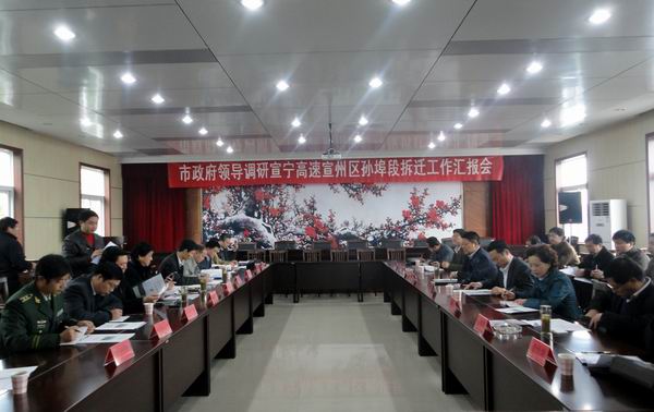 進(jìn)行現(xiàn)場(chǎng)了解之后,虞市長(zhǎng)立即在孫埠鎮(zhèn)政府主持召開了相關(guān)工作會(huì)議。會(huì)議過(guò)程中,虞市長(zhǎng)認(rèn)真聽取了孫埠鎮(zhèn)黨委史書記、鎮(zhèn)政府胡鎮(zhèn)長(zhǎng)的工作匯報(bào)和我部項(xiàng)目經(jīng)理張慶書所作的有關(guān)施工進(jìn)展情況以及當(dāng)前面臨的重大客觀困難的情況介紹。隨后立即組織了討論解決問(wèn)題的對(duì)策。虞市長(zhǎng)指出:作為政府方面,宣城市交通局、宣州區(qū)政府以及孫埠鎮(zhèn)政府必須從宣城市大局發(fā)展的角度,提高認(rèn)識(shí)、明確責(zé)任、開通思路、多想辦法、強(qiáng)化措施,保證在月底前完成宣寧高速02標(biāo)段紅線內(nèi)房屋拆遷工作,為安徽省公路橋梁工程公司提供一個(gè)暢通、穩(wěn)定的施工環(huán)境!