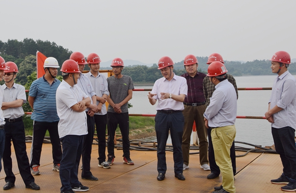 5月24日下午,集團(tuán)公司副總經(jīng)理戴良軍到萬佛湖02標(biāo)項(xiàng)目檢查指導(dǎo)工作,集團(tuán)總工辦副主任崔林釗、公司副總經(jīng)理、總工程師彭申凱,副總經(jīng)理任杰陪同。