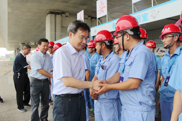 連日以來,高溫酷暑籠罩著江淮大地,但廣大安徽路橋人依然堅守施工一線,揮汗如雨。7月26日上午11時,安徽省住建廳黨組書記、廳長張?zhí)炫啵h組成員、副廳長吳桂和,副巡視員劉少為一行在集團工會主席徐曉光,公司董事長、黨委書記、總經理孫學軍等有關人員的陪同下,深入合肥阜陽北路高架項目看望慰問一線建設者,叮囑項目部做好防暑降溫工作,切實保障職工身心健康。