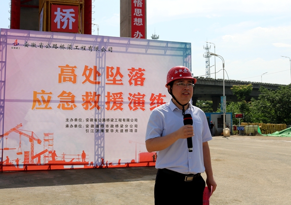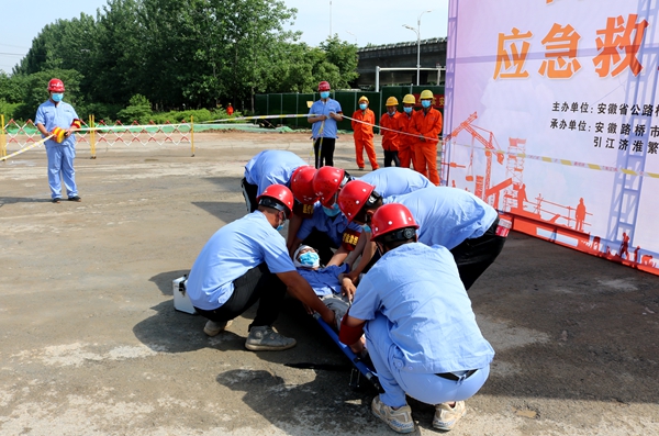 5月29日,公司在引江濟(jì)淮繁華大道項目舉行高處墜落事故應(yīng)急演練。公司領(lǐng)導(dǎo)班子及機(jī)關(guān)各部門負(fù)責(zé)人、分子公司領(lǐng)導(dǎo)班子成員、各項目經(jīng)理、繁華大道項目全體員工及工友代表參觀演練。