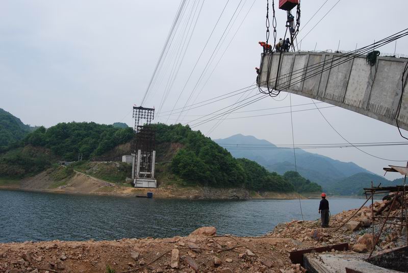 2009年4月30日上午10:30,寧靜的大別山革命老區(qū)金寨縣梅山水庫上空傳來了清脆的鞭炮聲,絢爛的禮花把青山綠水映襯得更加多姿。備受社會關注的金寨縣金桃大橋主橋第二孔,即桃?guī)X跨第一片重達75T的箱拱梁被緩緩吊起,在眾目凝視下穩(wěn)穩(wěn)就位,為“五.一”國際勞動節(jié)獻上了一份厚禮。這預示著金桃大橋又取得了一個實質性的進展和階段性的勝利。金寨縣交通局張傳旭局長、王學軍副局長、總監(jiān)賈淳忠等在公司總經濟師楊文柱的陪同下,現場觀看了整個吊裝過程。下午,金寨縣人大副主任石本德、縣委常委、常務副縣長趙權分別到場表示祝賀和慰問。