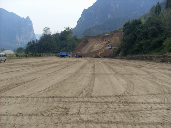 11月5日,位于K57+000的路基試驗(yàn)段正式開(kāi)始施工;同時(shí),標(biāo)段內(nèi)構(gòu)造物的施工也于5日正式開(kāi)工。至此,我標(biāo)段內(nèi)橋梁、路基、構(gòu)造物的施工已全面展開(kāi)。10月下旬我部開(kāi)始了標(biāo)段紅線內(nèi)的清表工作,經(jīng)過(guò)項(xiàng)目上多個(gè)部門(mén)十余天的努力,最終將一條翻越山嶺、穿越村莊的施工便道通到了路基試驗(yàn)段所在地,機(jī)械設(shè)備及車(chē)輛按時(shí)進(jìn)入指定地點(diǎn),為試驗(yàn)段的開(kāi)工做好充分準(zhǔn)備。