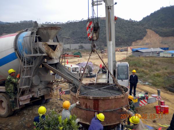 12時08分,在這個風和日麗的午后,第一孔水下灌注樁樁基灌注工作正式開始。灌注過程中,我部遵照“嚴控質量關,嚴把安全關”的要求進行施工,項目部技術員與安全員均到現(xiàn)場進行了詳細的施工技術交底和安全技術交底。