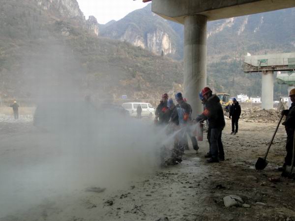 為加強冬季防火安全工作,1月16日,宜巴09標在橋梁一工區(qū)組織進行防火演練,以檢驗并增強我部發(fā)現(xiàn)安全隱患、及時處理的應急能力。本次演練由項目部分管安全工作的黨支部書記邵建新?lián)慰傊笓],安全部部長萬和國擔任現(xiàn)場指揮,項目總工、各工區(qū)區(qū)長和現(xiàn)場施工班組負責人到場參與演練。