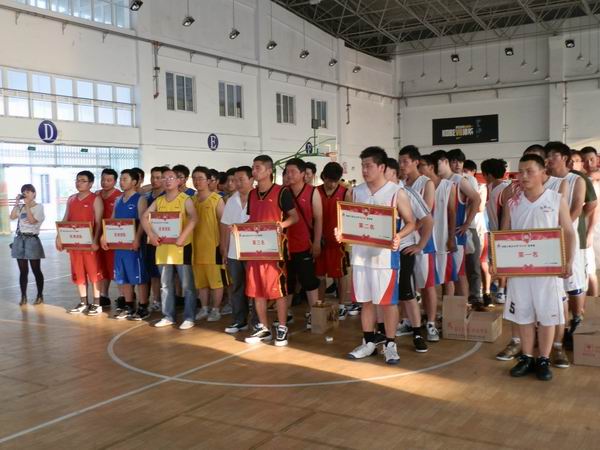 下午2:30,正式開始淘汰賽。在本組比賽中,阜陽北路與東俊隊比分始終處于膠著狀態(tài),全場結(jié)束后,比分為28:28。經(jīng)過加時賽,東俊隊以一分的優(yōu)勢險勝阜陽北路隊,進入總決賽。下午16:30,環(huán)湖北路與東俊隊進行總決賽。雙方隊員積極進攻、嚴密防守,精彩的配合,巧妙的搶斷,不時將比賽氣氛推向高潮。最終,環(huán)湖北路隊的奪冠為此次籃球友誼賽畫上了圓滿的句號。