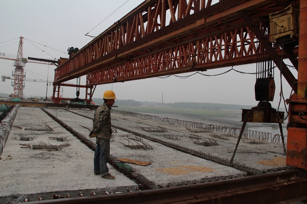 蚌固02標(biāo)懷洪新河特大橋箱梁架設(shè)順利完成
