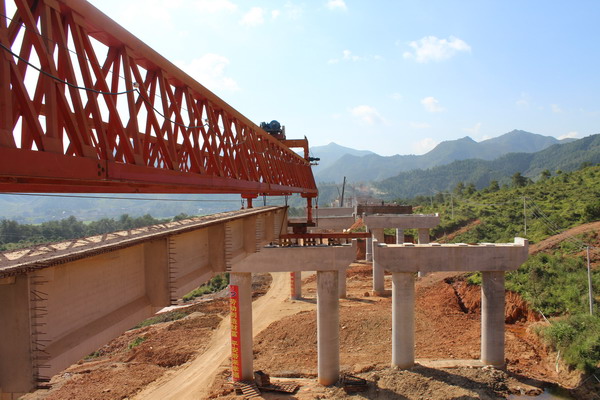 昌寧高速C5標(biāo)完成龍坊高架第一片40米T梁架設(shè) 發(fā)布時(shí)間:2014年09月18日 來源:昌寧高速C5標(biāo) 發(fā)布人: 作者:王振堂 瀏覽:2796次 9月18日上午9時(shí)18分,昌寧高速公路C5標(biāo)龍坊高架第一片40米T梁順利架設(shè)成功,標(biāo)志著作為全線控制性工程的龍坊高架橋進(jìn)入了上部施工階段,極大地提振了項(xiàng)目部全體員工和參建隊(duì)伍的戰(zhàn)斗精神。