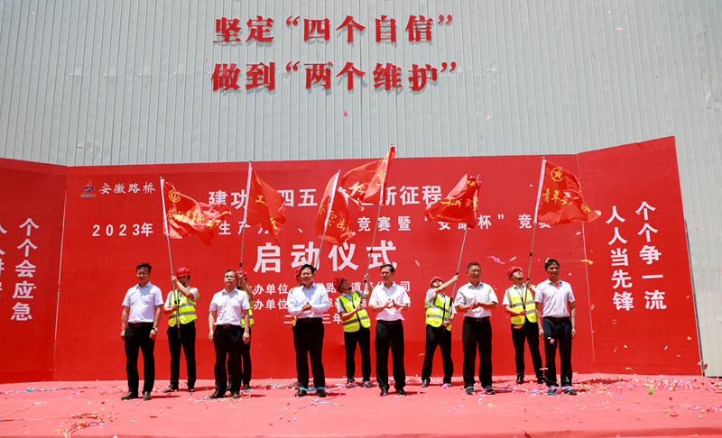 6月8日上午,道路分公司在徐淮阜高速(淮北段)項(xiàng)目舉行2023年度“安全生產(chǎn)月”、勞動競賽暨“安康杯”競賽啟動儀式?;幢笔薪煌ㄟ\(yùn)輸局黨組書記、局長王慶江宣布活動正式啟動,淮北市交通運(yùn)輸局總工程師蔣衛(wèi),市應(yīng)急局四級調(diào)研員王琛,公司黨委委員、副總經(jīng)理韋秀剛出席啟動儀式。活動由道路分公司黨總支書記、總經(jīng)理張慶書主持。