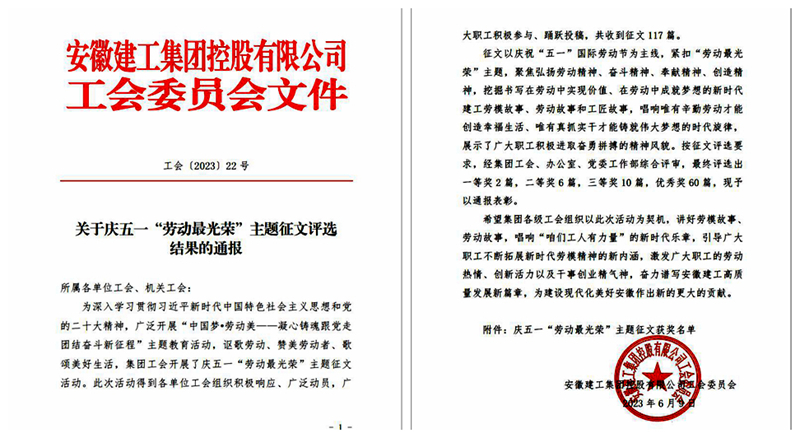 安徽路橋公司在集團慶五一“勞動最光榮”主題征文活動中喜獲佳績