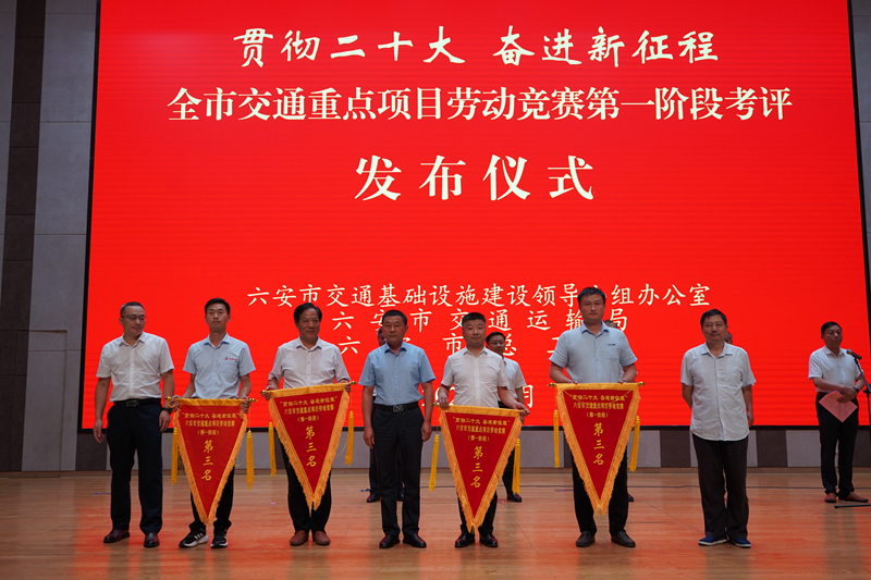 7月15日,在六安市交通運輸基礎(chǔ)設(shè)施領(lǐng)導(dǎo)小組辦公室、市交通運輸局、市總工會聯(lián)合舉行的“貫徹二十大 奮進(jìn)新征程”全市交通重點項目勞動競賽第一階段考評發(fā)布儀式上,公司承建的六安G237一期項目榮獲國省干線公路項目第一名、霍邱縣彭塔至潘集段建設(shè)工程榮獲第三名。