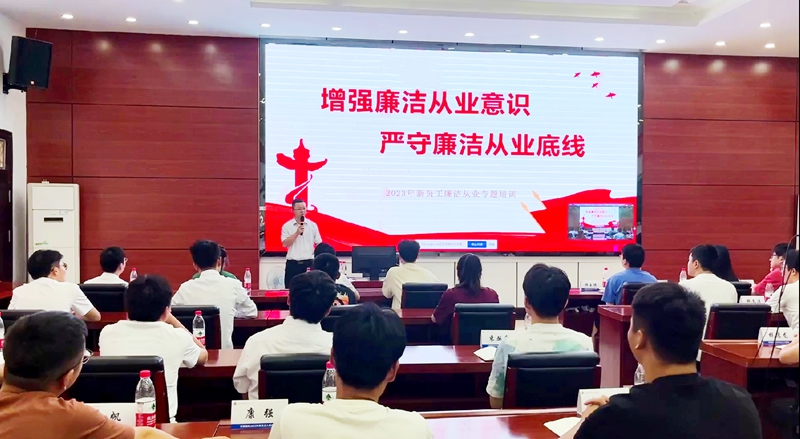 公司紀委以《增強廉潔從業(yè)意識 嚴守廉潔從業(yè)底線》為主題,從當前黨風廉政建設和反腐敗斗爭形勢、特點入手,結合違紀違法典型案例開展警示教育,對《中國共產(chǎn)黨紀律處分條例》《安徽路橋員工廉潔從業(yè)負面清單》等制度規(guī)定進行針對性的解讀。教育引導新入職員工要加強學習,堅定理想信念,筑牢廉潔思想防線;要樹牢規(guī)矩意識,嚴守“底線”,不越“紅線”,不碰“高壓線”;要永葆清廉初心,自覺拒腐防變,干凈做事,清白做人,助力公司高質(zhì)量發(fā)展。