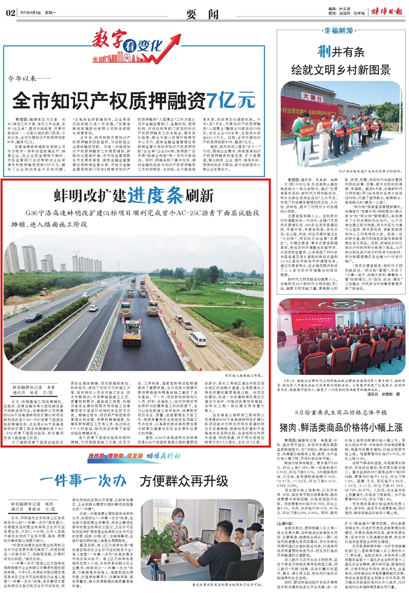 【名媒聚焦】蚌埠日報:蚌明改擴建進度條刷新——G36寧洛高速蚌明改擴建01標(biāo)項目順利完成首個AC-25C瀝青下面層試驗段攤鋪,進入路面施工階段