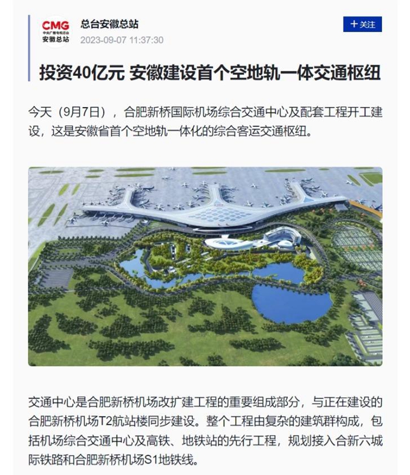 【名媒聚焦】央視新聞、人民日報等國家級主流媒體聚焦安徽路橋合肥新橋機場綜合交通項目建設(shè)