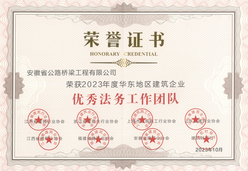公司榮獲2023年度華東地區(qū)建筑企業(yè)“優(yōu)秀法務工作團隊”稱號