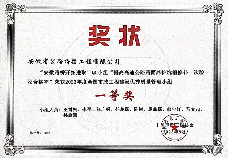 11月10日,中國(guó)市政工程協(xié)會(huì)“2023年全國(guó)市政工程建設(shè)質(zhì)量管理小組培訓(xùn)交流會(huì)”在廣東佛山順利召開(kāi),會(huì)上頒發(fā)了2023年度全國(guó)市政工程建設(shè)優(yōu)秀質(zhì)量管理小組各分組成績(jī)排名第一的QC成果證書(shū),公司3項(xiàng)成果名列其中。