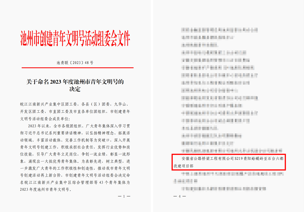 12月7日,池州市青年文明號風采展示暨授牌儀式成功舉辦,現(xiàn)場公布了獲評2023年度池州市青年文明號名單,公司承建的S219青陽改建工程項目喜獲殊榮。