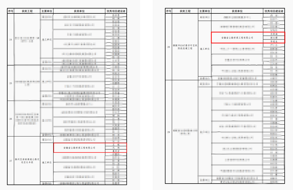 近日,中國公路建設(shè)行業(yè)協(xié)會公布2022~2023年度(第二批)公路交通優(yōu)質(zhì)工程獎(李春獎)名單,公司參建的滁州至淮南高速公路定遠(yuǎn)至長豐段、銅陵市G347普濟(jì)圩至樅陽段改建工程2個項目榜上有名。截至目前,公司已摘得12項“李春獎”。