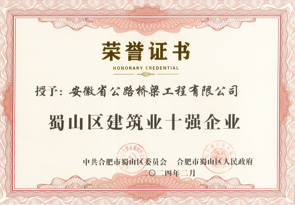 公司再獲蜀山區(qū)“建筑業(yè)10強(qiáng)企業(yè)”