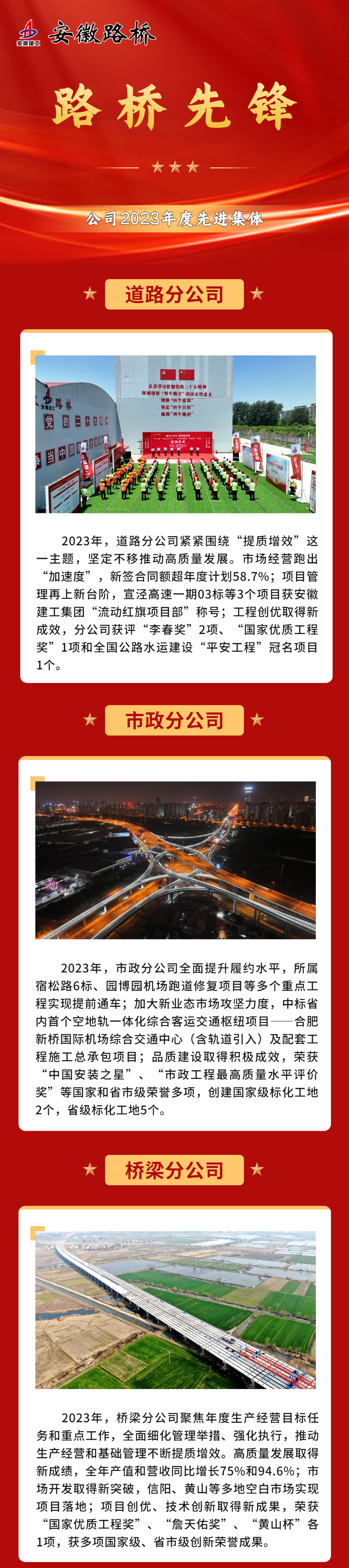 【路橋先鋒】公司2023年度先進(jìn)集體風(fēng)采展示 發(fā)布時(shí)間:2024年03月15日 來源:黨委組織部(人力資源部、黨委宣傳部)、所屬各單位 發(fā)布人:黨委組織部(人力資源部、黨委宣傳部) 作者: 瀏覽:2565次
