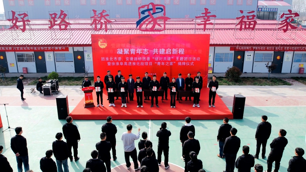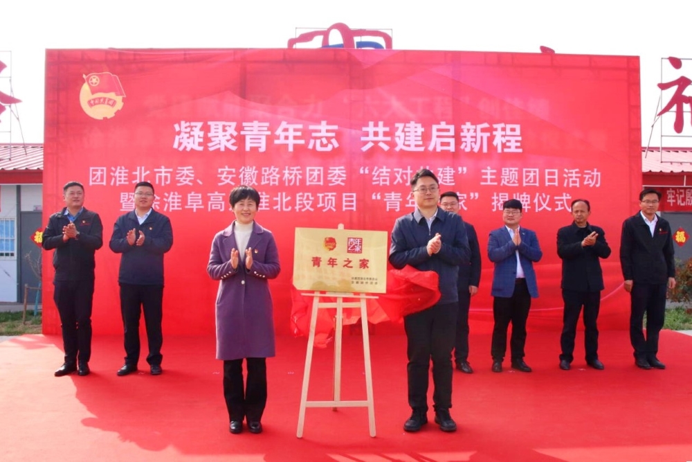 3月28日下午,團(tuán)淮北市委、安徽路橋團(tuán)委在徐淮阜高速(淮北段)項(xiàng)目聯(lián)合開(kāi)展主題團(tuán)日活動(dòng)。團(tuán)淮北市委書(shū)記陳文靖、副書(shū)記李凱,公司黨委委員、紀(jì)委書(shū)記王鵬出席活動(dòng)并共同為徐淮阜高速淮北段項(xiàng)目“青年之家”揭牌。
