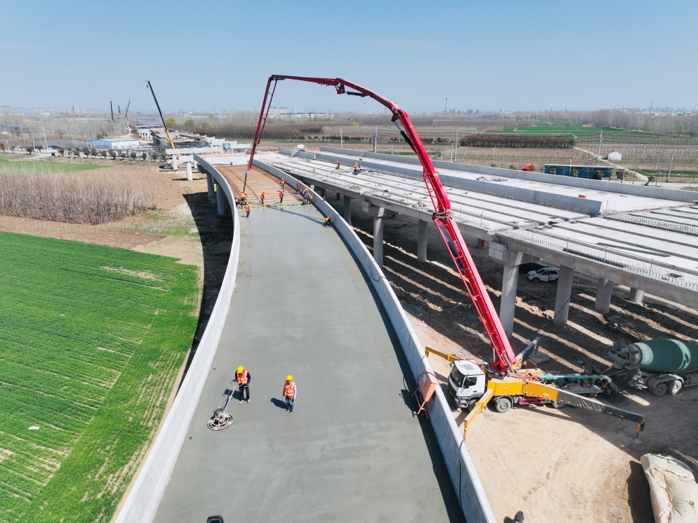 “施工過程中,我們嚴把原材料質(zhì)量、橋面清理、鋼筋網(wǎng)片鋪設、混凝土澆筑等各道工序,攤鋪后對混凝土表面進行二次收面,及時覆蓋土工布并進行灑水養(yǎng)生,使橋面達到內(nèi)實外美效果?!敝苌垸i說,全線橋面鋪裝總計88聯(lián),橋面鋪裝首件工程的順利澆筑,為后續(xù)橋面施工提供了技術支撐,截至3月底已累計完成10跨。