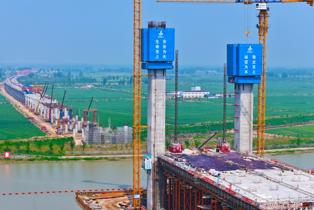 【路橋“競(jìng)”行時(shí)】S16合周高速4標(biāo)東淝河大橋項(xiàng)目主橋邊跨現(xiàn)澆箱梁澆筑完成