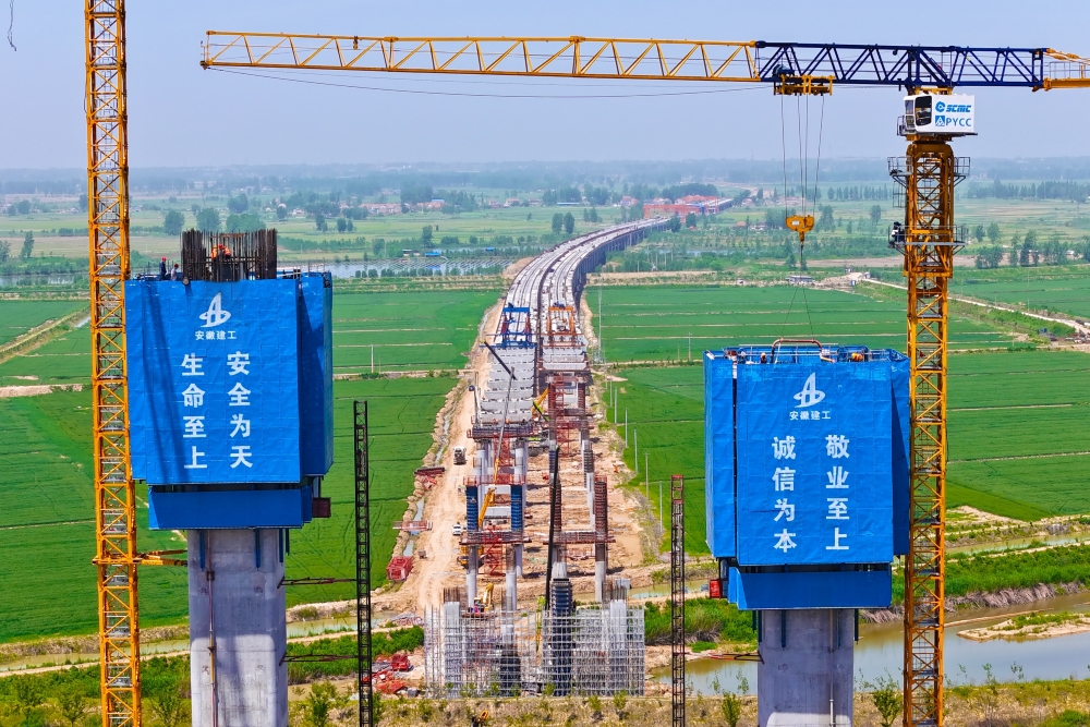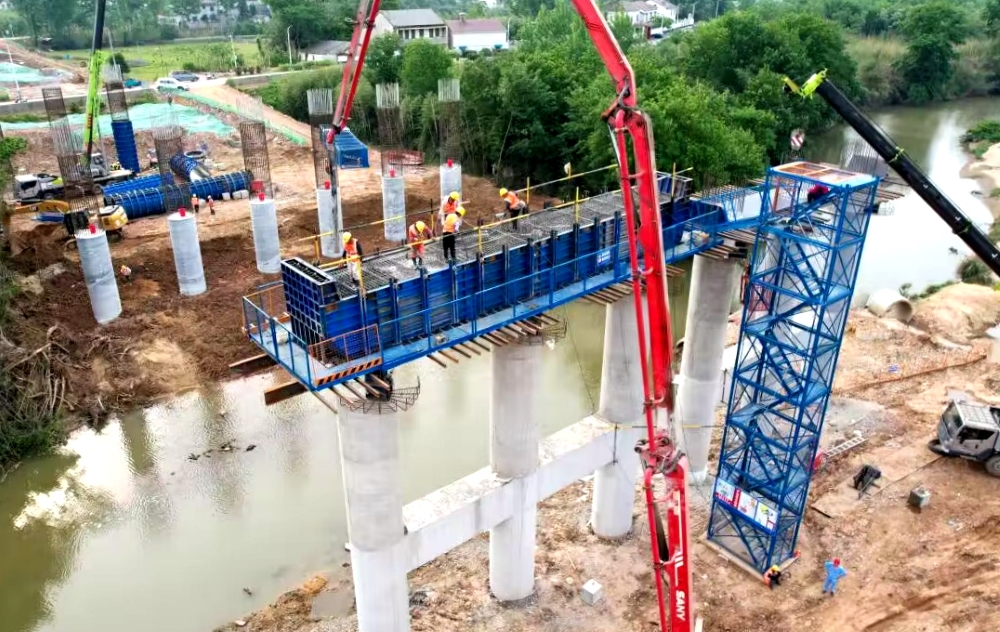 S16合周高速4標東淝河大橋項目全員堅守崗位,搶抓利好天氣,全面推進主橋塔柱節(jié)段澆筑、橋梁墩柱施工和引橋梁板架設等重要工序。